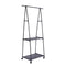 Suport de umerase triunghiular, cu doua rafturi, 4 roti, negru, 158x86x42cm